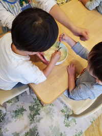 おやつ前に栄養士が子ども達の目の前で仕上げてくれました。